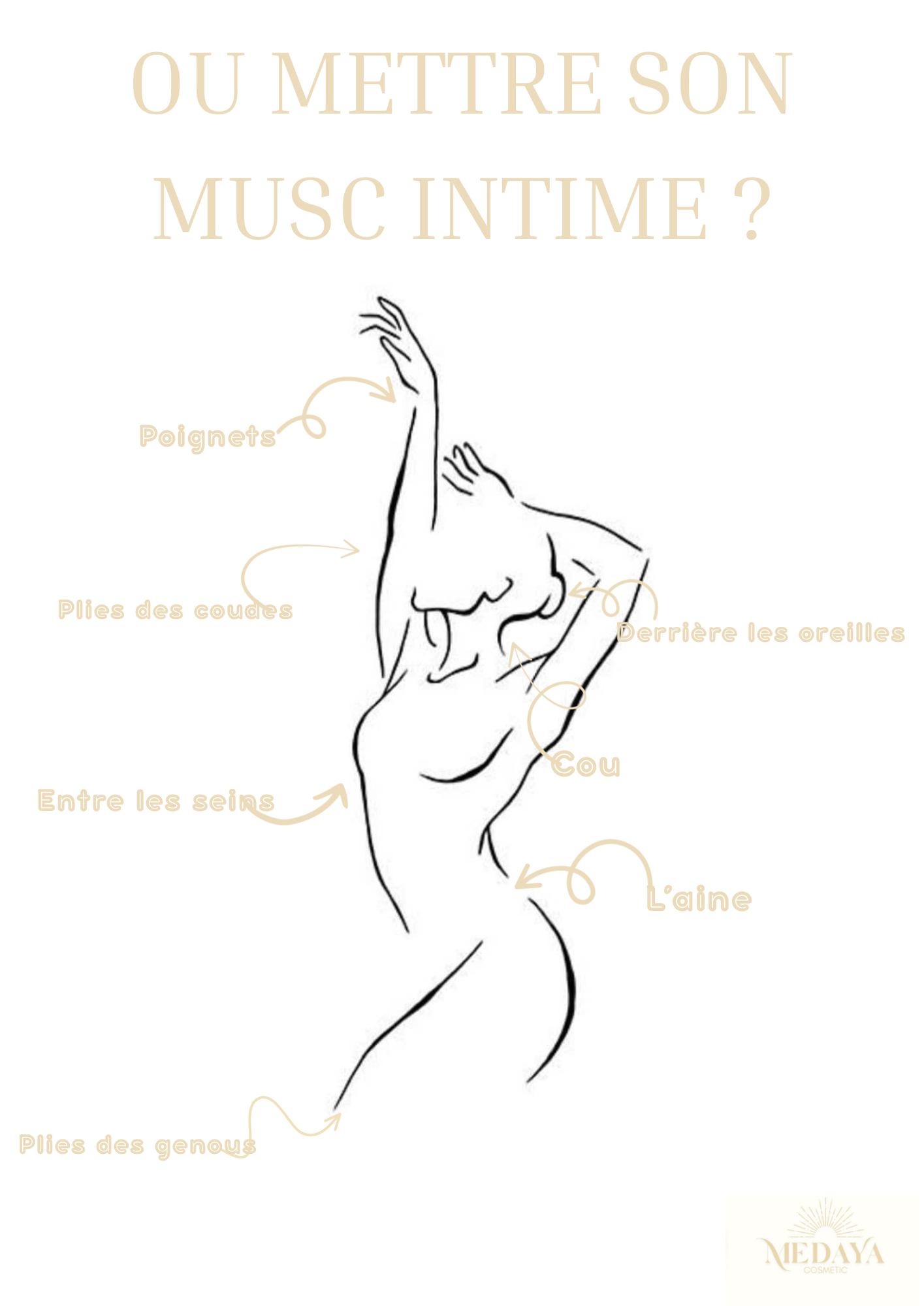 Le musc intime est un parfum doux, traditionnellement utilisé pour parfumer délicatement la zone intime après la toilette.